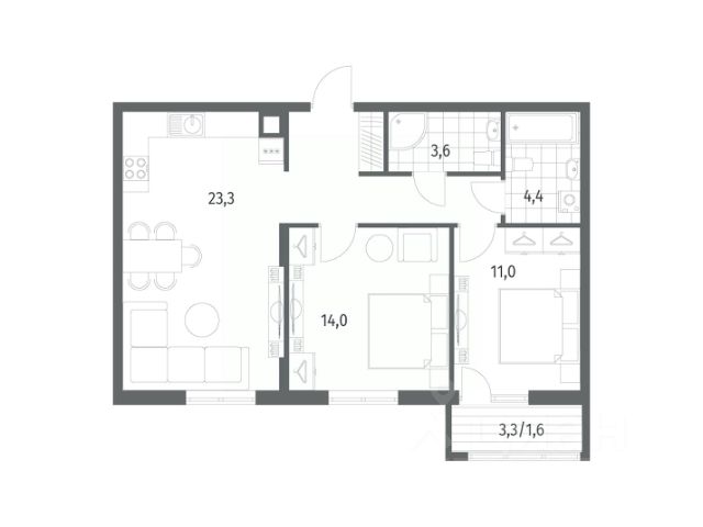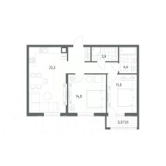 Продается квартира площадью 65.6 м² на 1 этаже 2 секции в River Park от компании ГК "ТРЕСТ". Площадь кухни 23.3 м².