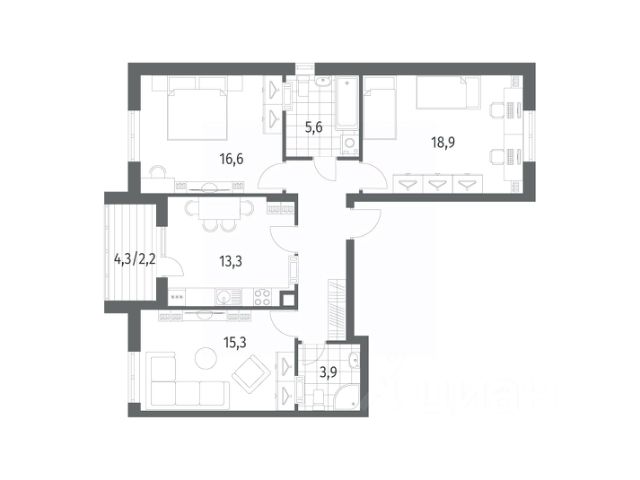 Продается квартира площадью 84.3 м² на 2 этаже 1 секции в River Park от компании ГК "ТРЕСТ". Площадь кухни 13.3 м².