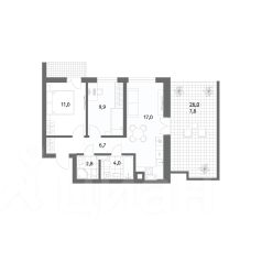 Продается квартира площадью 70.2 м² на 1 этаже 1 секции в Ривер парк от компании ГК "ТРЕСТ". Площадь кухни 12.6 м².
