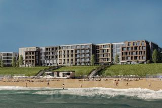 Рядом расположены красиво стилизованные мини отели . В 100 метрах находится фешенебельный комплекс "Резиденция у моря" со знаменитым ансамблем фигур "Купание малышей" с развлекательными площадками для детей и взрослых, бассейном с теплой водой под открытым небом, Хамам, Джакузи , Сауна , Устричная .