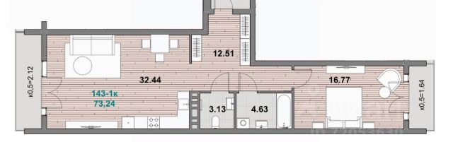 Квартира с евроремонтом , большая кухня 13,5 кв.м, гостиная 13,2 кв.м.и комната 36,4кв.м.