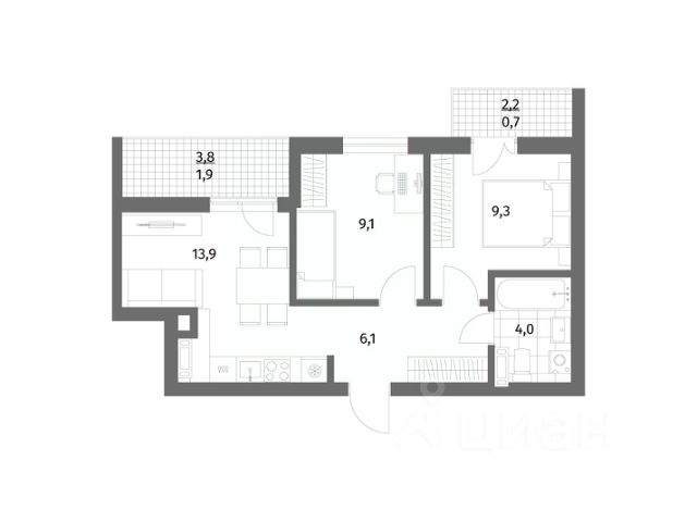 + балкон 3 м2 с лучшим вид на закат и город на юго-западную сторону.