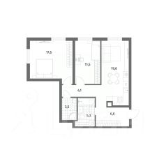 Продается квартира площадью 68.2 м² на 1 этаже 1 секции в River Park от компании ГК "ТРЕСТ". Площадь кухни 19.6 м².