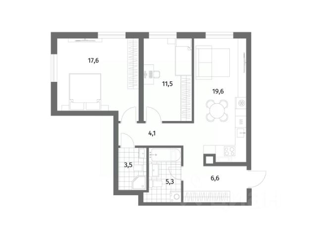 Продается квартира площадью 55.7 м² на 3 этаже 1 секции в River Park от компании ГК "ТРЕСТ". Площадь кухни 14.7 м².
