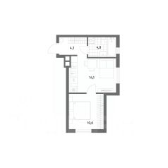 Продается квартира площадью 32.6 м² на 4 этаже 2 секции в River Park от компании ГК "ТРЕСТ". Площадь кухни 10.6 м².