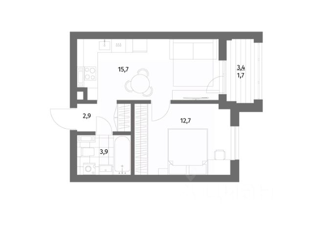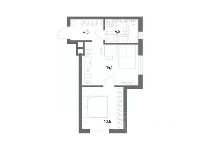 Продается квартира площадью 33.8 м² на 1 этаже 1 секции в River Park от компании ГК "ТРЕСТ". Площадь кухни 14.1 м².
