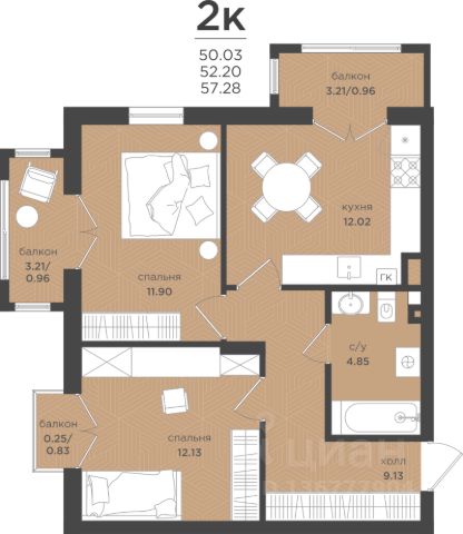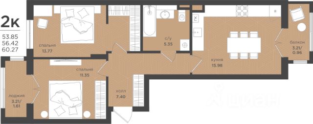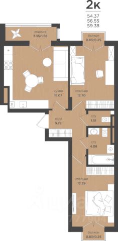 Продаётся 2-комнатная квартира в строящемся доме (ГП1, 1 этап), срок сдачи: IV-кв. 2026, общей площадью 56.55 кв.м., на 3 этаже. Новый жилой комплекс "Вишневый квартал" от компании "Эллипс" расположен в пос. Вишневое Калининградской области на ул. Глазурная.