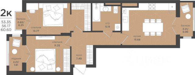 Продаётся 2-комнатная квартира в строящемся доме (ГП1, 1 этап), срок сдачи: IV-кв. 2026, общей площадью 56.55 кв.м., на 3 этаже. Новый жилой комплекс "Вишневый квартал" от компании "Эллипс" расположен в пос. Вишневое Калининградской области на ул. Глазурная.