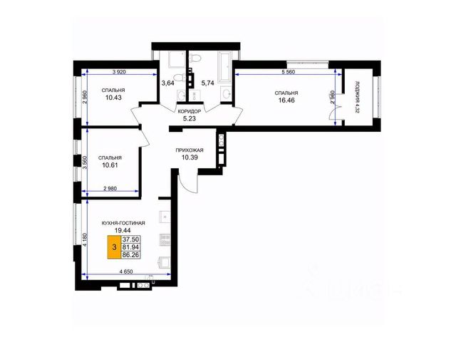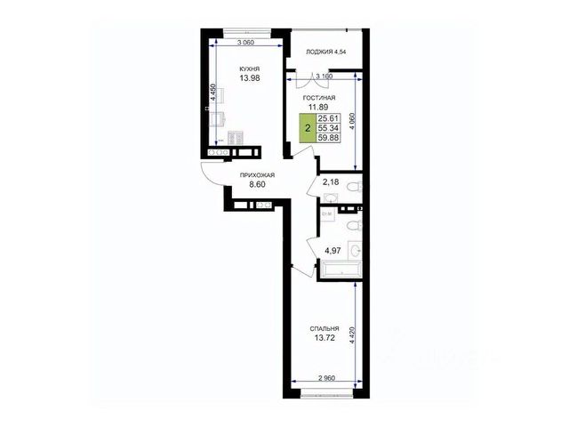 Продаётся 2-комнатная квартира в сданном доме (Краковский бульвар, 19), срок сдачи: III-кв. 2025, общей площадью 60.8 кв.м., на 5 этаже.