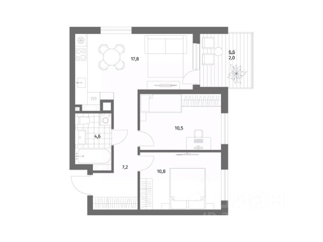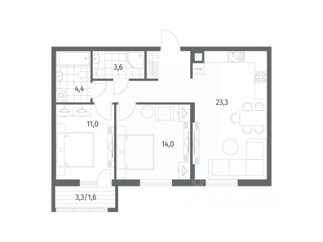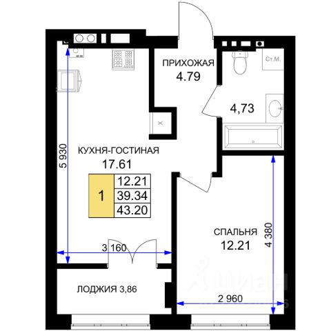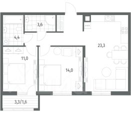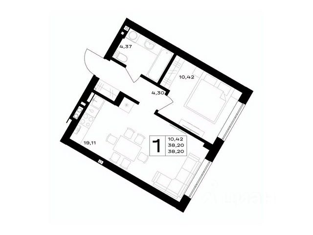 Площадь квартиры составляет 42,21 кв.м., кухня-гостиная 16,58 кв.м., комната 12,28 кв.м., лоджия 3,82 кв.м. Квартира не угловая, установлены стеклопакеты, сан\узел совместный, в квартире будет выполнен качественный "серый ключ", что Вам дает возможность реализовать все Ваши идеи. Квартира подойдет как для молодых людей, так и оптимальный вариант для инвестиции в недвижимость.
