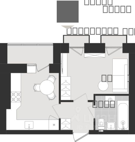 Продаётся 1-комнатная квартира в строящемся доме (Дом 5), срок сдачи: III-кв. 2027, общей площадью 30.48 кв.м., на 9 этаже. Новый жилой комплекс "Этюд" от Группы компаний "Модуль-Стройград" расположен в г. Калининград на ул. Поленова.