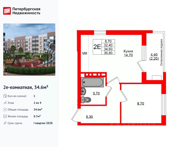 Продается просторная студия от застройщика в жилом комплексе "Кроны и Волны" в Зеленоградск. Удобная, классическая, функциональная европланировка, большая кухня-гостиная 5 м², просторная прихожая 5.4 м². Общая площадь студии - 25.8 м², жилая 11.1 м², высота потолка 2.7 м. Квартира продается с отделкой "Серый ключ КиВ". Что особенного в ЖК "Кроны и Волны"? • Современный малоэтажный жилой комплекс • Дизайнерские детские площадки, зоны для спорта и активного отдыха, велодорожки • Помещения для колясок и велосипедов в каждой парадной • Неповторимые лесные пейзажи в непосредственной близости к побережью Балтийского моря • Концепция "Двор без машин"