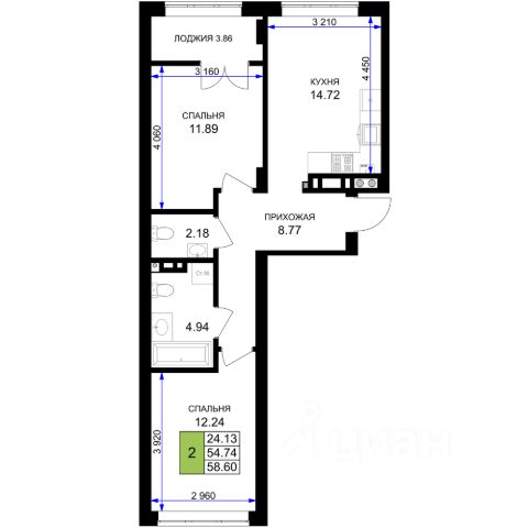 Продаётся 1-комнатная квартира в строящемся доме (Дом 1), срок сдачи: IV-кв. 2025, общей площадью 30.21 кв.м., на 2 этаже.