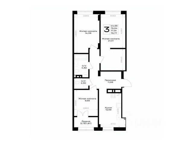 Отличная планировка: кухня 11,11 м², жилая 10 м², просторная прихожая 4,7 кв м .