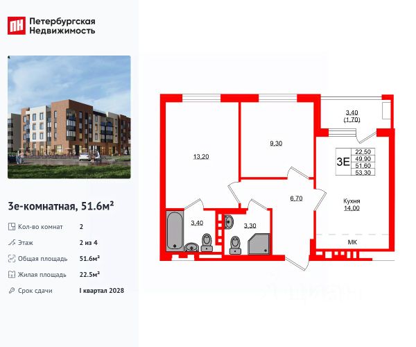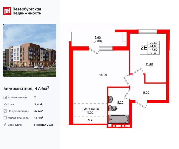 Продается уютная 2-комнатная квартира от застройщика в жилом комплексе "Кроны и Волны" в Зеленоградск. Удобная, классическая, функциональная европланировка, большая кухня-гостиная 23.2 м², вместительная прихожая 5 м². Общая площадь квартиры - 47.6 м², жилая 11.4 м², высота потолка 2.7 м. Квартира продается с отделкой "КиВ "Nord Line White"". Что особенного в ЖК "Кроны и Волны"? • Современный малоэтажный жилой комплекс • Дизайнерские детские площадки, зоны для спорта и активного отдыха, велодорожки • Помещения для колясок и велосипедов в каждой парадной • Неповторимые лесные пейзажи в непосредственной близости к побережью Балтийского моря • Концепция "Двор без машин"
