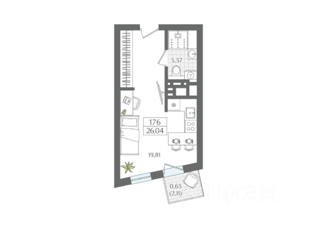На полу стяжка, балконов - 1, лоджий - 1, окна выходят во двор и на улицу.