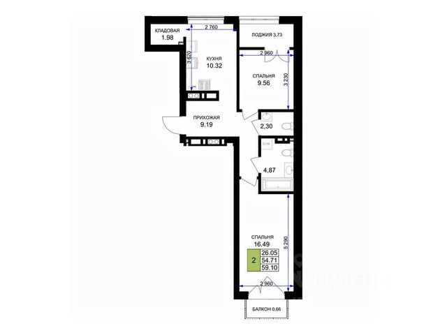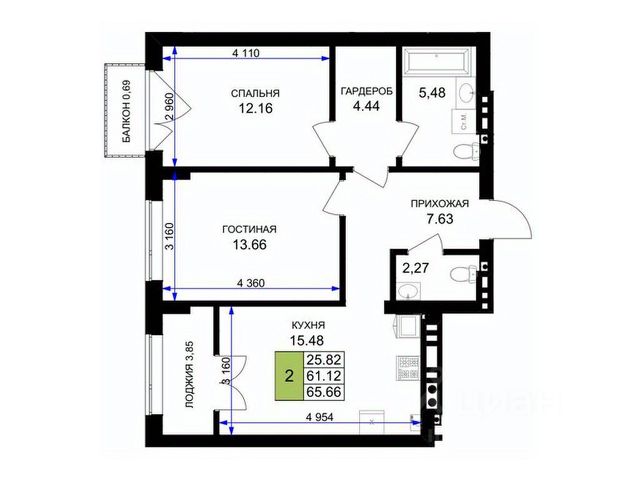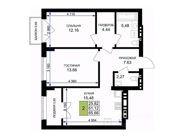 + балкон 3 м2 с лучшим вид на закат и город на юго-западную сторону.