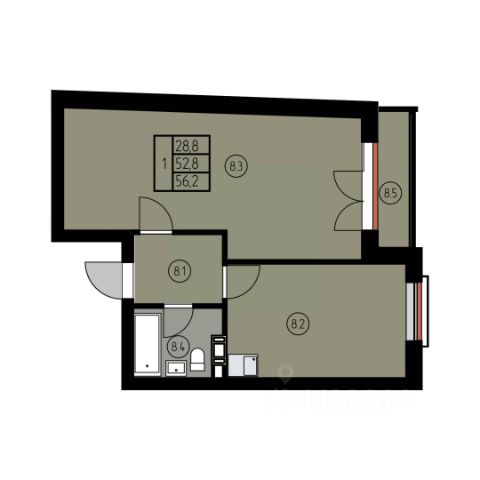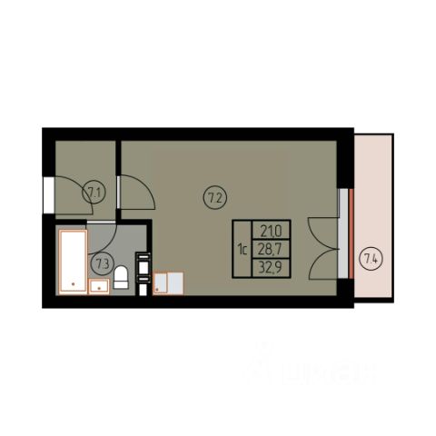 - Удобная функциональная планировка: кухня отделена от уютной спальной комнаты, есть гардеробная