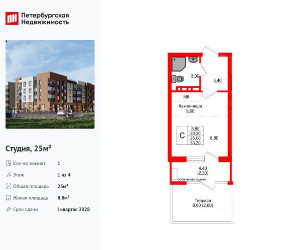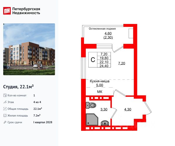 • Комплекс из 4-этажных домов.