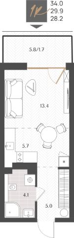 Благодаря очень удачной планировке эта студия обладает всеми качествами полноценной однушки, есть 5!!! независимых зон: санузел, прихожая, жилая комната, кухня, столовая( балкон). В квартире 2 больших окна, солнце летом во второй половине дня( здоровый сон обеспечен!).