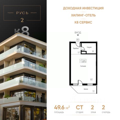 РУСЬ 2 Эксклюзивные апартаменты на побережье Балтийского моря, в Светлогорске Гостиничный комплекс "Русь-2" олицетворяет концепцию хилинг-отеля, созданного для восстановления сил, отдыха, оздоровления на берегу моря. Срок сдачи - 4 квартал 2028 года. Комплекс состоит из восьми корпусов с различными вариантами планировочных решений от студий площадью 28,5 м2 до апартаментов площадью 82,1 м2 с открытыми террасами. Высота потолков - 3 м. Предусмотрен подземный паркинг на 286 мест. В 1 очереди Руси расположится гостиница 5*, поликлиника реабилитационно-восстановительной направленности. Здесь вы найдете идеальный синтез релакса и бережного оздоровления. Особенностью второй очереди является то, что она будет полностью интегрирована с внешней инфраструктурой всего комплекса "Русь". Собственники апартаментов будут иметь возможность, не покидая комплекса, пользоваться всеми услугами СПА, бассейнов, фитнес-залов и хилинг-сервисов с приятным дисконтом. Комплекс окружает безупречная инфраструктура: Конференц-залы, коворкинги, места для работы на открытом воздухе Рестораны с летними террасами и видом на море Авторская концепция благоустройства территории, арт-объекты, озеленение и продуманным освещением Изысканные дизайнерские интерьеры и безупречное обслуживание консьерж-сервиса Апартамент в отделке White Box Для покупателей апартаментов действуют все ипотечные программы, рассрочка от застройщика или 100% оплата за собственные средства. Помощь с оформлением сделки от ипотечного брокера и юристов застройщика. Звоните, готовы ответить на все ваши вопросы в удобное для Вас время! Не является публичной офертой, предложение ограничено, оценивайте свои финансовые возможности и риски. Застройщик: ООО "СЗ Шеф Повар". Проектная декларация размещена на сайте наш.дом.рф. Сроки, условия проведения акций и актуальные цены на сайте девелопера. Когда вы выбираете недвижимость от К8 — вы выбираете комфортную, продуманную и растущую в цене среду для жизни или инвестиций. Что вы получаете: 1. Недвижимость, которая дорожает: каждый проект создаётся так, чтобы его ценность росла. Вы покупаете актив, который работает на вас. 2. Продуманные концепции: вы живете в пространстве с идеей, смыслом и логикой - где каждая деталь служит вашему удобству. 3. Настоящий комфорт: планировки, которые экономят место и время. Дома, где технические решения подчинены вашему образу жизни. 4. Эстетику, которая радует каждый день: архитектура, на которую приятно смотреть, и окружение, которое радует. 5. Качество, которое чувствуется: материалы, инженерия, благоустройство - вы видите и ощущаете результаты внимательного подхода. 6. Заботу на всех этапах: вам помогают подобрать недвижимость именно под ваши цели: для жизни, отдыха или инвестиций - в Светлогорске, Зеленоградске и Калининграде. 7. Возможность стабильного дохода: вы получаете доступ к курортной недвижимости с высокой инвестиционной привлекательностью доходностью выше рынка. 8. Сообщество единомышленников: комфортная среда, и