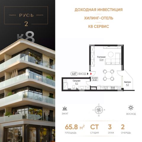 РУСЬ 2 Эксклюзивные апартаменты на побережье Балтийского моря, в Светлогорске Гостиничный комплекс "Русь-2" олицетворяет концепцию хилинг-отеля, созданного для восстановления сил, отдыха, оздоровления на берегу моря. Срок сдачи - 4 квартал 2028 года. Комплекс состоит из восьми корпусов с различными вариантами планировочных решений от студий площадью 28,5 м2 до апартаментов площадью 82,1 м2 с открытыми террасами. Высота потолков - 3 м. Предусмотрен подземный паркинг на 286 мест. В 1 очереди Руси расположится гостиница 5*, поликлиника реабилитационно-восстановительной направленности. Здесь вы найдете идеальный синтез релакса и бережного оздоровления. Особенностью второй очереди является то, что она будет полностью интегрирована с внешней инфраструктурой всего комплекса "Русь". Собственники апартаментов будут иметь возможность, не покидая комплекса, пользоваться всеми услугами СПА, бассейнов, фитнес-залов и хилинг-сервисов с приятным дисконтом. Комплекс окружает безупречная инфраструктура: Конференц-залы, коворкинги, места для работы на открытом воздухе Рестораны с летними террасами и видом на море Авторская концепция благоустройства территории, арт-объекты, озеленение и продуманным освещением Изысканные дизайнерские интерьеры и безупречное обслуживание консьерж-сервиса Апартамент в отделке White Box Для покупателей апартаментов действуют все ипотечные программы, рассрочка от застройщика или 100% оплата за собственные средства. Помощь с оформлением сделки от ипотечного брокера и юристов застройщика. Звоните, готовы ответить на все ваши вопросы в удобное для Вас время! Не является публичной офертой, предложение ограничено, оценивайте свои финансовые возможности и риски. Застройщик: ООО "СЗ Шеф Повар". Проектная декларация размещена на сайте наш.дом.рф. Сроки, условия проведения акций и актуальные цены на сайте девелопера. Когда вы выбираете недвижимость от К8 — вы выбираете комфортную, продуманную и растущую в цене среду для жизни или инвестиций. Что вы получаете: 1. Недвижимость, которая дорожает: каждый проект создаётся так, чтобы его ценность росла. Вы покупаете актив, который работает на вас. 2. Продуманные концепции: вы живете в пространстве с идеей, смыслом и логикой - где каждая деталь служит вашему удобству. 3. Настоящий комфорт: планировки, которые экономят место и время. Дома, где технические решения подчинены вашему образу жизни. 4. Эстетику, которая радует каждый день: архитектура, на которую приятно смотреть, и окружение, которое радует. 5. Качество, которое чувствуется: материалы, инженерия, благоустройство - вы видите и ощущаете результаты внимательного подхода. 6. Заботу на всех этапах: вам помогают подобрать недвижимость именно под ваши цели: для жизни, отдыха или инвестиций - в Светлогорске, Зеленоградске и Калининграде. 7. Возможность стабильного дохода: вы получаете доступ к курортной недвижимости с высокой инвестиционной привлекательностью доходностью выше рынка. 8. Сообщество единомышленников: комфортная среда, и