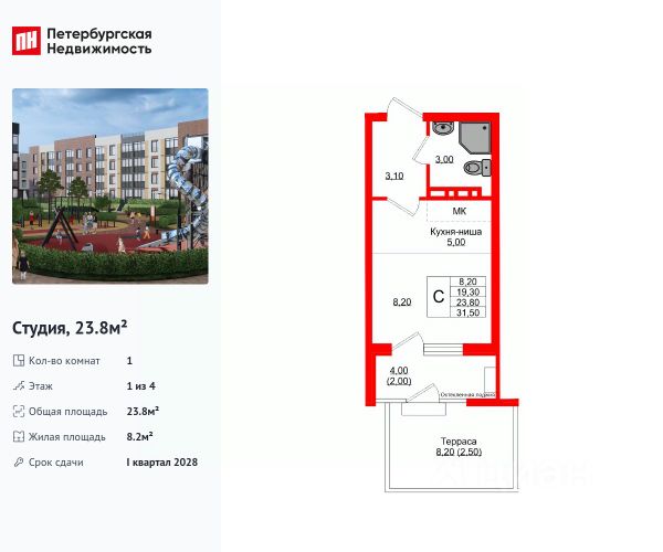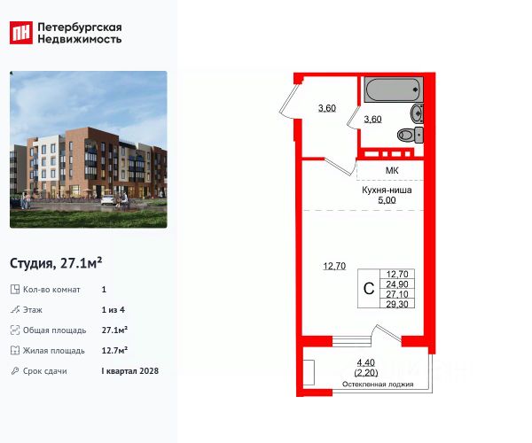 Продается просторная студия от застройщика в жилом комплексе "Кроны и Волны" в Зеленоградск. Удобная, классическая, функциональная европланировка, большая кухня-гостиная 5 м², просторная прихожая 3.8 м². Общая площадь студии - 25.7 м², жилая 11.4 м², высота потолка 2.7 м. Квартира продается с отделкой "Серый ключ КиВ". Что особенного в ЖК "Кроны и Волны"? • Современный малоэтажный жилой комплекс • Дизайнерские детские площадки, зоны для спорта и активного отдыха, велодорожки • Помещения для колясок и велосипедов в каждой парадной • Неповторимые лесные пейзажи в непосредственной близости к побережью Балтийского моря • Концепция "Двор без машин"