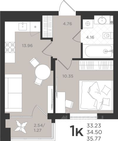 Удачное планировочное решение позволяет организовать комфортное пространство из видовой спальни и просторной кухни площадью 11,76 кв.м.