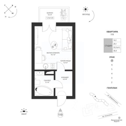 • ✓ В базе Циан 30 квартир-студий на 7 этаже в районе Московский в городе Калининград