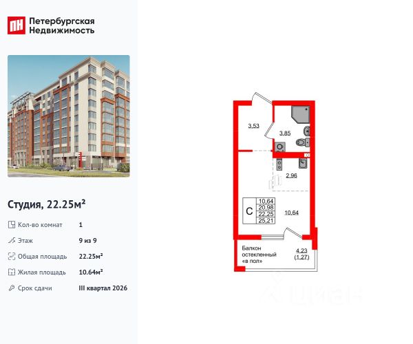 • ✓ В базе Циан 66 квартир-студий на 9 этаже в Калининграде