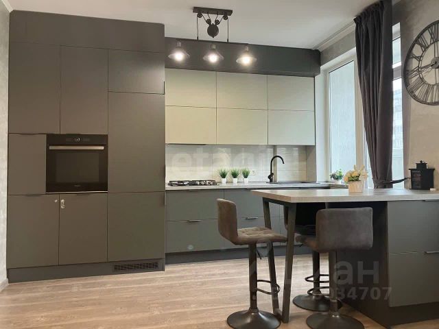 В квартире сделан евроремонт. В комнате и кухне — ламинат, санузел и лоджия — плитка. Для вас остаётся качественный и стильный кухонный гарнитур, варочная панель, духовка, холодильник, вытяжка, микроволновка, стиральная машинка, диван, телевизор, шкаф в коридоре.