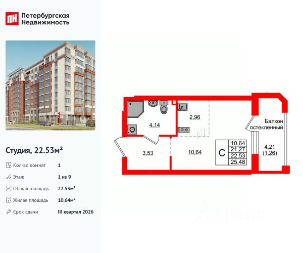 Вашему вниманию предлагается квартира-студия по переуступке от физ. лица.