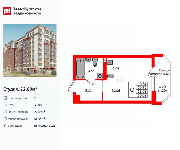Вашему вниманию предлагается квартира-студия по переуступке от физ. лица.