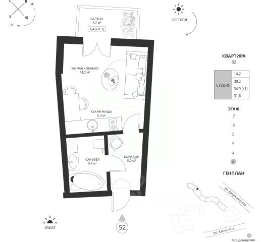 Жилой комплекс бизнес-класса в самом центре города со СПА-комплексом, круглогодичным подогреваемым бассейном и собственной управляющей компанией. Комплекс окружен городскими достопримечательностями: - Южный парк - набережная Рыбной деревни - остров Канта, - филиалы Третьяковской галереи и Большого театра - музей Фридландские ворота. Архитектура подчеркивает историческое наследие локации. Комбинированный фасад с элементами балтийского стиля в современном воплощении. Закрытая территория, двор-сад, арт-объекты и вертикальное озеленение. Комьюнити-центр, фитнес-клуб, своя поликлиника. Подходит как для комфортной жизни в центре города с природой, особенной средой и тишиной, так и для инвестиций: каждый метр работает на капитализацию. Комплекс состоит из 2-х 7-этажных домов: 126 квартир и 298 квартир На 1-м этаже располагаются коммерческие помещения. Подземный паркинг рассчитан на 105 машиномест. Квартиры предлагаются в отделке white box. Квартира в ЖК Фридланд 2 очередь - надежная гавань Ваших сбережений. Квартира приобретается по договору долевого участия с эскроу счетом. Возможна оплата и с использованием ипотеки или 100% оплатой за счёт собственных средств. Звоните, с радостью проведем консультацию в удобное для Вас время! Застройщик ООО "СЗ "СпецСтрой", проектная декларация размещена на сайте наш.дом.рф. Продам квартиру-студию в районе Московский в городе Калининград.
