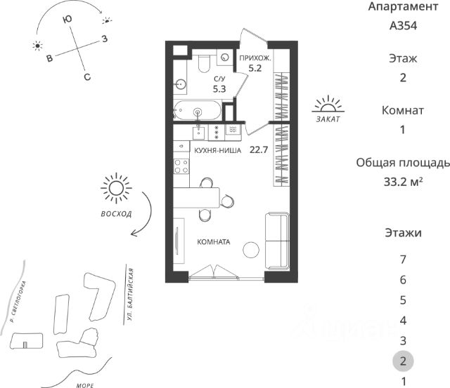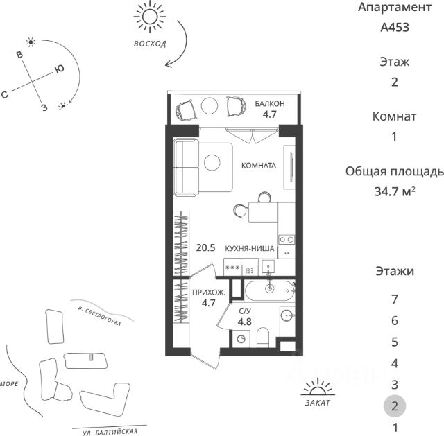 Благодаря очень удачной планировке эта студия обладает всеми качествами полноценной однушки, есть 5!!! независимых зон: санузел, прихожая, жилая комната, кухня, столовая( балкон). В квартире 2 больших окна, солнце летом во второй половине дня( здоровый сон обеспечен!).