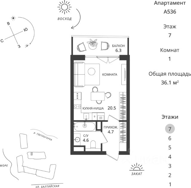 Представляем вам уникальный проект в Светлогорске жилой комплекс "Морская нота". Это место, где природа и комфорт сливаются в единую симфонию, создавая идеальные условия для жизни и отдыха. Архитектура и удобства Комплекс состоит из 16 пятиэтажных домов, каждый из которых оснащен лифтом для вашего удобства. Мы позаботились о создании безбарьерной среды, чтобы каждый житель чувствовал себя комфортно. В домах предусмотрено автономное отопление, что гарантирует тепло и уют в любое время года. Разнообразие планировок В первом доме ЖК "Морская нота" представлены уютные студии и однокомнатные квартиры различных планировок. Просторные открытые балконы и остекленные лоджии позволяют наслаждаться свежим морским воздухом и потрясающими видами на окрестности. Идеальное расположение Комплекс расположен в непосредственной близости к морю, что позволяет вам ежедневно наслаждаться музыкой волн и свежестью бриза. Отличная транспортная доступность обеспечивает легкий доступ ко всем необходимым объектам инфраструктуры города Светлогорска и города Калининграда. Безопасность и комфорт Ваша безопасность наш приоритет. Комплекс оборудован современными системами видеонаблюдения, чтобы вы могли жить спокойно и уверенно. Двор без машин обеспечивает безопасность ваших детей и спокойствие для всей семьи. Отделка Выполнена стяжка пола, оштукатурены стены. Разведённые коммуникации (электрика, вода, газ). Установлены счётчики, домофон. Квартира от застройщика Покупка квартиры напрямую от застройщика это гарантия качества и надежности. Мы предлагаем выгодные условия приобретения жилья в новостройках. При покупке квартир в данном ЖК вы можете использовать любые сертификаты и любые ипотечные программы (семейная, IT). Так же вы можете воспользоваться беспроцентной рассрочкой от застройщика. В продаже имеются кладовые помещения Откройте для себя жизнь у моря с жилым комплексом "Морская нота" здесь каждая деталь продумана для вашего комфорта! *условия по рассрочке уточняйте у менеджера.