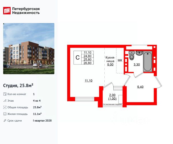 Продается уютная студия от застройщика в жилом комплексе "Кроны и Волны" в Зеленоградск. Удобная, классическая, функциональная европланировка, большая кухня-гостиная 5 м², просторная прихожая 3.4 м². Общая площадь студии - 21.4 м², жилая 7.4 м², высота потолка 3 м. Квартира продается с отделкой "Серый ключ КиВ". Что особенного в ЖК "Кроны и Волны"? • Современный малоэтажный жилой комплекс • Дизайнерские детские площадки, зоны для спорта и активного отдыха, велодорожки • Помещения для колясок и велосипедов в каждой парадной • Неповторимые лесные пейзажи в непосредственной близости к побережью Балтийского моря • Концепция "Двор без машин"