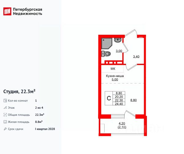 Продается уютная студия от застройщика в жилом комплексе "Кроны и Волны" в Зеленоградск. Удобная, классическая, функциональная европланировка, большая кухня-гостиная 5 м², вместительная прихожая 3.1 м². Общая площадь студии - 21.3 м², жилая 8.2 м², высота потолка 2.7 м. Квартира продается с отделкой "КиВ "Nord Line Silver"". Что особенного в ЖК "Кроны и Волны"? • Современный малоэтажный жилой комплекс • Дизайнерские детские площадки, зоны для спорта и активного отдыха, велодорожки • Помещения для колясок и велосипедов в каждой парадной • Неповторимые лесные пейзажи в непосредственной близости к побережью Балтийского моря • Концепция "Двор без машин"