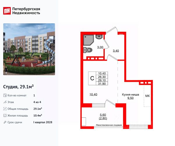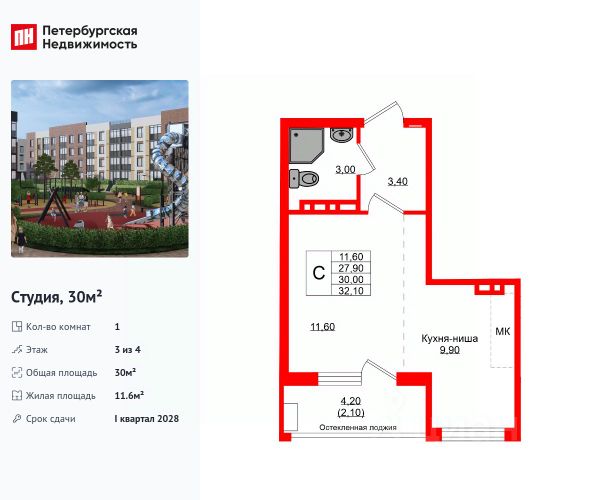 Продается уютная студия от застройщика в жилом комплексе "Кроны и Волны" в Зеленоградск. Удобная, классическая, функциональная европланировка, большая кухня-гостиная 5 м², просторная прихожая 3.4 м². Общая площадь студии - 21.4 м², жилая 7.4 м², высота потолка 2.7 м. Квартира продается с отделкой "Серый ключ КиВ". Что особенного в ЖК "Кроны и Волны"? • Современный малоэтажный жилой комплекс • Дизайнерские детские площадки, зоны для спорта и активного отдыха, велодорожки • Помещения для колясок и велосипедов в каждой парадной • Неповторимые лесные пейзажи в непосредственной близости к побережью Балтийского моря • Концепция "Двор без машин"