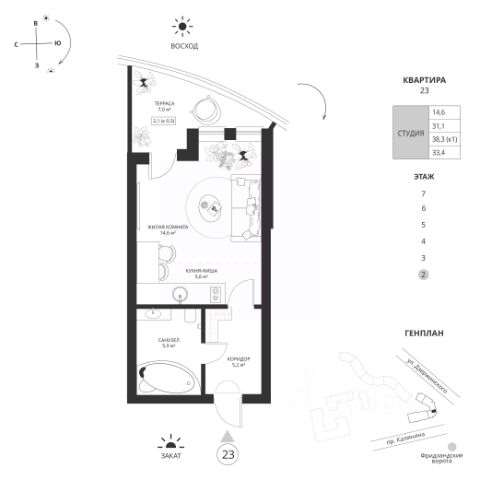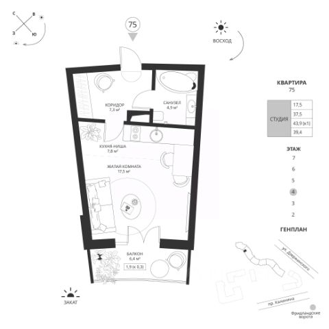 Акция "Черная пятница Х8" .Цена действует только при 100% оплате (в т.ч. при ипотеке без субсидирования) или рассрочке до 6 месяцев при первоначальном взносе от 50%. Срок действия акции: 08.11.25-07.12.25. в данный период необходимо произвести оплату, не является публичной офертой, предложение ограничено. Акция не суммируется ни с какими другими акциями на сайте.Жилой комплекс бизнес-класса в самом центре города со СПА-комплексом, круглогодичным подогреваемым бассейном и собственной управляющей компанией. Комплекс окружен городскими достопримечательностями: - Южный парк - набережная Рыбной деревни - остров Канта, - филиалы Третьяковской галереи и Большого театра - музей Фридландские ворота. Архитектура подчеркивает историческое наследие локации. Комбинированный фасад с элементами балтийского стиля в современном воплощении. Закрытая территория, двор-сад, арт-объекты и вертикальное озеленение. Комьюнити-центр, фитнес-клуб, своя поликлиника. Подходит как для комфортной жизни в центре города с природой, особенной средой и тишиной, так и для инвестиций: каждый метр работает на капитализацию. Комплекс состоит из 2-х 7-этажных домов: 126 квартир и 298 квартир На 1-м этаже располагаются коммерческие помещения. Подземный паркинг рассчитан на 105 машиномест. Квартиры предлагаются в отделке white box. Квартира в ЖК Фридланд 2 очередь - надежная гавань Ваших сбережений. Квартира приобретается по договору долевого участия с эскроу счетом. Возможна оплата и с использованием ипотеки или 100% оплатой за счёт собственных средств. Звоните, с радостью проведем консультацию в удобное для Вас время! Акция не суммируется ни с какими другими акциями на сайте. Все акции, кроме "Черной пятницы", "Спец.цена на данный лот", "К8 дарит подарки" рассчитываются от базовой стоимости. Застройщик ООО "СЗ "СпецСтрой", проектная декларация размещена на сайте наш.дом.рф. Продается квартира-студия с отделкой от застройщика в районе Московский в городе Калининград.