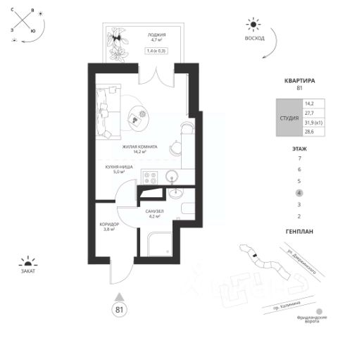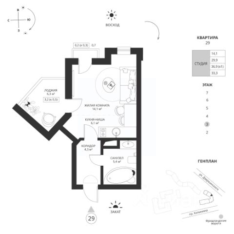 Квартира 431. ЖК "Альпенштадт" это новая история, которая начинается с вашего выбора прямо сейчас. Чистый воздух и природная красота будут сочетаться здесь с городским комфортом проживания. Все необходимое для повседневной жизни рядом. Инфраструктура комплекса дополняет развитую инфраструктуру района. Транспортная доступность, 7 минут до центра города, удобный выезд к морю, рядом остановки общественного транспорта. В этом жилом комплексе вам понравится: - авторская архитектура; - дизайнерское оформление входных групп и мест общего пользования, - автономное отопление; - новейшие детские и спортивные площадки; - двор "без машин" и благоустройство территории; - подземный паркинг с системой вентиляции, пожаротушения и охраны; - передовые технологии пожарной безопасности и видеонаблюдения, умный домофон "Спутник" с мобильным приложением. Эргономичные и продуманные планировки с просторными кухнями-гостиными и гардеробными, системами хранения, мастер-спальнями. Квартира полностью подготовлена к финишной отделке: - стяжка пола под напольное покрытие; - высокое качество штукатурки стен под покраску или поклейку обоев, - входная дверь высокого класса, - автономное отопление с установкой котла и радиаторов. - система электропроводки, выключатели и розетки. Чистовая отделка от КСК. Включите стоимость ремонта в ипотечный кредит, выплачивайте удобными платежами и получите готовую квартиру для жизни при выдаче ключей. В каждом подъезде предусмотрены места для хранения велосипедов и колясочные, кладовые помещения на цокольных этажах. ОТ НАС - полное сопровождение сделки: помощь в подборе квартиры, оказание юридического сопровождения, а также самые выгодные условия ипотечного кредитования (реализация субсидий, мат. капитала, льготная ипотека с гос. поддержкой). Звоните, будем рады помочь осуществить Вашу мечту! Купить квартиру-студию с отделкой от застройщика в Калининграде.