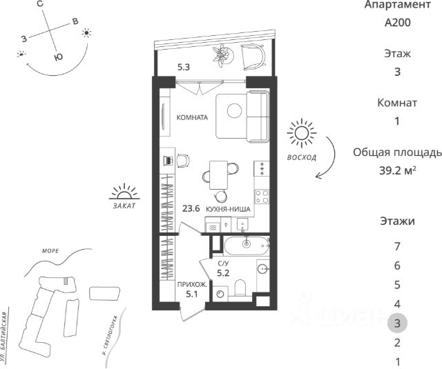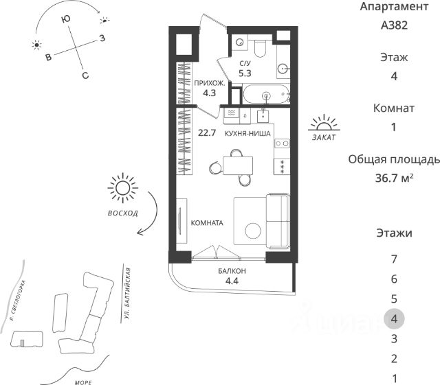 СПЕЦ.ЦЕНА на данный лот! Цена действует только при 100% оплате (в т.ч. при ипотеке без субсидирования) или рассрочке до 6 месяцев при первоначальном взносе от 50%. РУСЬ 2 Эксклюзивные апартаменты на побережье Балтийского моря, в Светлогорске Гостиничный комплекс "Русь-2" олицетворяет концепцию хилинг-отеля, созданного для восстановления сил, отдыха, оздоровления на берегу моря. Срок сдачи - 4 квартал 2028 года. Комплекс состоит из восьми корпусов с различными вариантами планировочных решений от студий площадью 28,5 м2 до апартаментов площадью 82,1 м2 с открытыми террасами. Высота потолков - 3 м. Предусмотрен подземный паркинг на 286 мест. В 1 очереди Руси расположится гостиница 5*, поликлиника реабилитационно-восстановительной направленности. Здесь вы найдете идеальный синтез релакса и бережного оздоровления. Особенностью второй очереди является то, что она будет полностью интегрирована с внешней инфраструктурой всего комплекса "Русь". Собственники апартаментов будут иметь возможность, не покидая комплекса, пользоваться всеми услугами СПА, бассейнов, фитнес-залов и хилинг-сервисов с приятным дисконтом. Комплекс окружает безупречная инфраструктура: Конференц-залы, коворкинги, места для работы на открытом воздухе Рестораны с летними террасами и видом на море Авторская концепция благоустройства территории, арт-объекты, озеленение и продуманным освещением Изысканные дизайнерские интерьеры и безупречное обслуживание консьерж-сервиса Апартамент в отделке White Box Для покупателей апартаментов действуют все ипотечные программы, рассрочка от застройщика или 100% оплата за собственные средства. Помощь с оформлением сделки от ипотечного брокера и юристов застройщика. Звоните, готовы ответить на все ваши вопросы в удобное для Вас время! Не является публичной офертой, предложение ограничено, оценивайте свои финансовые возможности и риски. Застройщик: ООО "СЗ Шеф Повар". Проектная декларация размещена на сайте наш.дом.рф. Сроки, условия проведения акций и актуальные цены на сайте девелопера. Когда вы выбираете недвижимость от К8 — вы выбираете комфортную, продуманную и растущую в цене среду для жизни или инвестиций. Что вы получаете: 1. Недвижимость, которая дорожает: каждый проект создаётся так, чтобы его ценность росла. Вы покупаете актив, который работает на вас. 2. Продуманные концепции: вы живете в пространстве с идеей, смыслом и логикой - где каждая деталь служит вашему удобству. 3. Настоящий комфорт: планировки, которые экономят место и время. Дома, где технические решения подчинены вашему образу жизни. 4. Эстетику, которая радует каждый день: архитектура, на которую приятно смотреть, и окружение, которое радует. 5. Качество, которое чувствуется: материалы, инженерия, благоустройство - вы видите и ощущаете результаты внимательного подхода. 6. Заботу на всех этапах: вам помогают подобрать недвижимость именно под ваши цели: для жизни, отдыха или инвестиций - в Светлогорске, Зеленоградске и Калининграде. 7. Возможность стабильного дохода: Продается квартира-студия в новостройке с отделкой в Светлогорске.