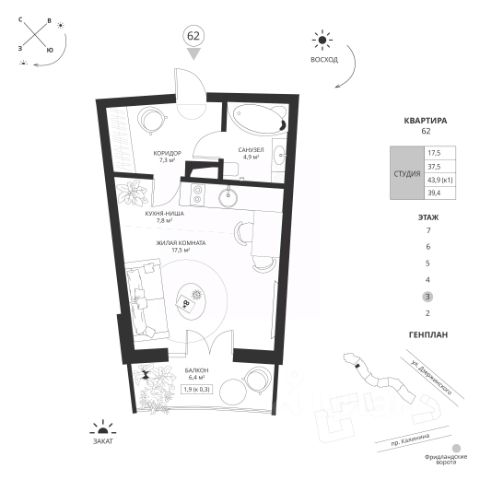 Акция "Черная пятница Х8" .Цена действует только при 100% оплате (в т.ч. при ипотеке без субсидирования) или рассрочке до 6 месяцев при первоначальном взносе от 50%. Срок действия акции: 08.11.25-07.12.25. в данный период необходимо произвести оплату, не является публичной офертой, предложение ограничено. Акция не суммируется ни с какими другими акциями на сайте.Жилой комплекс бизнес-класса в самом центре города со СПА-комплексом, круглогодичным подогреваемым бассейном и собственной управляющей компанией. Комплекс окружен городскими достопримечательностями: - Южный парк - набережная Рыбной деревни - остров Канта, - филиалы Третьяковской галереи и Большого театра - музей Фридландские ворота. Архитектура подчеркивает историческое наследие локации. Комбинированный фасад с элементами балтийского стиля в современном воплощении. Закрытая территория, двор-сад, арт-объекты и вертикальное озеленение. Комьюнити-центр, фитнес-клуб, своя поликлиника. Подходит как для комфортной жизни в центре города с природой, особенной средой и тишиной, так и для инвестиций: каждый метр работает на капитализацию. Комплекс состоит из 2-х 7-этажных домов: 126 квартир и 298 квартир На 1-м этаже располагаются коммерческие помещения. Подземный паркинг рассчитан на 105 машиномест. Квартиры предлагаются в отделке white box. Квартира в ЖК Фридланд 2 очередь - надежная гавань Ваших сбережений. Квартира приобретается по договору долевого участия с эскроу счетом. Возможна оплата и с использованием ипотеки или 100% оплатой за счёт собственных средств. Звоните, с радостью проведем консультацию в удобное для Вас время! Акция не суммируется ни с какими другими акциями на сайте. Все акции, кроме "Черной пятницы", "Спец.цена на данный лот", "К8 дарит подарки" рассчитываются от базовой стоимости. Застройщик ООО "СЗ "СпецСтрой", проектная декларация размещена на сайте наш.дом.рф. Квартира-студия от застройщика в районе Московский в городе Калининград.