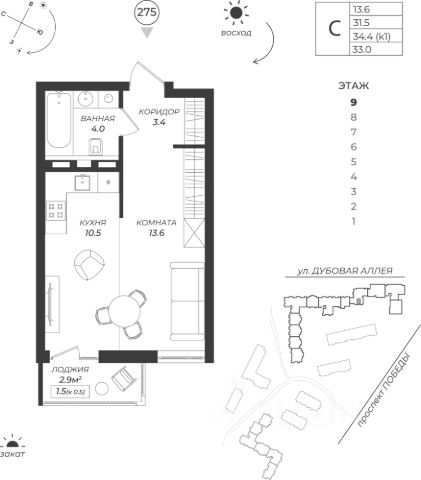 6. Заботу на всех этапах: вам помогают подобрать недви Продам квартиру-студию от застройщика в Калининградской области.