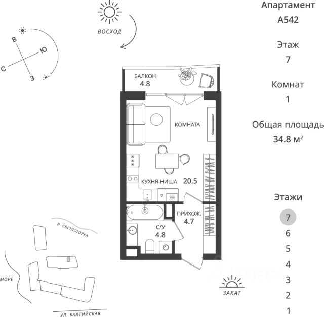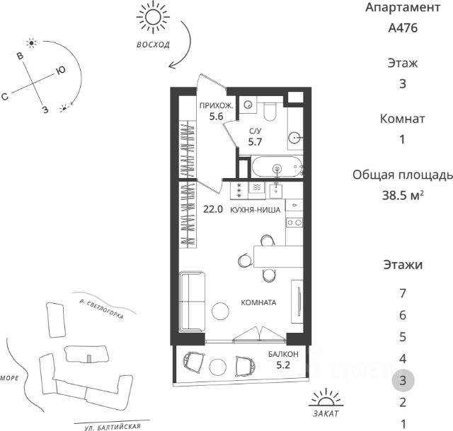 Балтийская Резорт — новый гостиничный комплекс премиального формата в Светлогорске, созданный для тех, кто выбирает жизнь у моря без компромиссов или инвестиции с быстрой окупаемостью. А может быть все сразу. Первый в Светлогорске прямой и комфортный спуск к морю, без перепадов высоты, для тех, кто не любит кардио нагрузки и лестницы. Собственная экосистема сервиса — здесь каждый день напоминает об отдыхе, даже если вы приехали всего на выходные. Главная особенность комплекса — масштабная инфраструктура уровня курорта. Первое место в Светлогорске где можно задержаться до полуночи. В составе Балтийская Резорт: • Флагманский СПА-комплекс от создателей "Баден Аква СПА" с бассейном и зонами релакса • Современный фитнес-центр • Бильярд, караоке и ресторан — центр притяжения для отдыха и встреч • Уютные зоны для работы • Прачечная, супермаркет, салон красоты, сервисная компания • ЗАГС и площадки для церемоний в парке, у моря и на кровле • Подземный паркинг, охрана, видеонаблюдение Жить в Балтийская Резорт — значит иметь собственный мир у моря, где быт решается автоматически, а время принадлежит вам. Инвестиционная привлекательность. Балтийская Резорт — это не только премиальный уровень жизни, но и сильная инвестиционная модель: • Проект расположен в топовой туристической зоне Светлогорска — высокий стабильный спрос на аренду круглый год. • Апартаменты могут передаваться в управление — полностью пассивный доход без вашего участия. • Капитализация проекта по прогнозам — 130%+ к вводу в эксплуатацию. • Стартовая цена существенно ниже будущей рыночной стоимости — редкая возможность зайти "на старте" в один из самых сильных проектов региона. Качество и стандарты: • Потолки 3 метра, большие окна, продуманная архитектура • Апартаменты в отделке White box в подарок и возможностью передачи в управление • Собственная управляющая компания и сервис под ключ • ДДУ, ФЗ-214 • Ипотека, рассрочка, 100% оплата Звоните — проведём презентацию, подберём планировку и рассчитаем инвестиционный потенциал вашей покупки. Проектная декларация размещена на сайте наш.дом.рф Предложение ограничено. *Не является публичной офертой. Указанные цифры являются прогнозными. Расчет выполнен по состоянию на декабрь 2025. Реальная доходность может отличаться от расчетной и зависит от множества факторов, включая рыночную конъюнктуру, расходы на содержание объекта (налоги, ремонт, коммунальные платежи), а также возможные периоды простоя. Данный расчет не является гарантированным и не представляет собой финансовую рекомендацию. Продается квартира-студия с отделкой в Светлогорске.