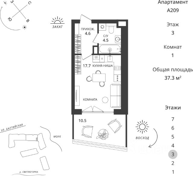 СПЕЦ.ЦЕНА на данный лот! ПОДХОДИТ ПОД ИПОТЕКУ 5,4% ДО ВВОДА! Или при 100% оплате (в т.ч. при ипотеке без субсидирования) или рассрочке до 6 месяцев при первоначальном взносе от 50%. Срок проведения акции 08.04.26-07.05.26 РУСЬ 2 Эксклюзивные апартаменты на побережье Балтийского моря, в Светлогорске Гостиничный комплекс "Русь-2" олицетворяет концепцию хилинг-отеля, созданного для восстановления сил, отдыха, оздоровления на берегу моря. Срок сдачи - 4 квартал 2028 года. Комплекс состоит из восьми корпусов с различными вариантами планировочных решений от студий площадью 28,5 м2 до апартаментов площадью 82,1 м2 с открытыми террасами. Высота потолков - 3 м. Предусмотрен подземный паркинг на 286 мест. В 1 очереди Руси расположится гостиница 5*, поликлиника реабилитационно-восстановительной направленности. Здесь вы найдете идеальный синтез релакса и бережного оздоровления. Особенностью второй очереди является то, что она будет полностью интегрирована с внешней инфраструктурой всего комплекса "Русь". Собственники апартаментов будут иметь возможность, не покидая комплекса, пользоваться всеми услугами СПА, бассейнов, фитнес-залов и хилинг-сервисов с приятным дисконтом. Комплекс окружает безупречная инфраструктура: Конференц-залы, коворкинги, места для работы на открытом воздухе Рестораны с летними террасами и видом на море Авторская концепция благоустройства территории, арт-объекты, озеленение и продуманным освещением Изысканные дизайнерские интерьеры и безупречное обслуживание консьерж-сервиса Апартамент в отделке White Box Для покупателей апартаментов действуют все ипотечные программы, рассрочка от застройщика или 100% оплата за собственные средства. Помощь с оформлением сделки от ипотечного брокера и юристов застройщика. Звоните, готовы ответить на все ваши вопросы в удобное для Вас время! Не является публичной офертой, предложение ограничено, оценивайте свои финансовые возможности и риски. Застройщик: ООО "СЗ Шеф Повар". Проектная декларация размещена на сайте наш.дом.рф. Сроки, условия проведения акций и актуальные цены на сайте девелопера. Когда вы выбираете недвижимость от К8 — вы выбираете комфортную, продуманную и растущую в цене среду для жизни или инвестиций. Что вы получаете: 1. Недвижимость, которая дорожает: каждый проект создаётся так, чтобы его ценность росла. Вы покупаете актив, который работает на вас. 2. Продуманные концепции: вы живете в пространстве с идеей, смыслом и логикой - где каждая деталь служит вашему удобству. 3. Настоящий комфорт: планировки, которые экономят место и время. Дома, где технические решения подчинены вашему образу жизни. 4. Эстетику, которая радует каждый день: архитектура, на которую приятно смотреть, и окружение, которое радует. 5. Качество, которое чувствуется: материалы, инженерия, благоустройство - вы видите и ощущаете результаты внимательного подхода. 6. Заботу на всех этапах: вам помогают подобрать недвижимость именно под ваши цели: для жизни, отдыха или инвестиций - в Светлогорске, Зелено Продается квартира-студия с отделкой в Светлогорске.