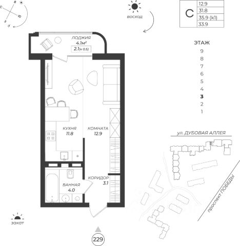 Теодор Кроне — современный жилой квартал класса комфорт+ в Центральном районе Калининграда с собственным спа-комплексом и комьюнити-центром. Здесь продумано все для тех, кто ценит качество, эстетику и полноценную жизнь рядом со всем необходимым. 99% повседневных услуг уже на территории жилого комплекса. Жить в "Теодор Кроне" — значит тратить меньше времени на быт и больше на себя. 3 очереди строительства: 1 очередь - сдана, 2 очередь 1 этап - ввод апрель 2026 года, 2 очередь 2 этап и 3 очередь - ввод 2030 год. Уникальные особенности проекта: СПА-центр и фитнес-зал в доме Современный коворкинг Детский клуб и бьюти-салон Кинозалы и амфитеатр для культурных мероприятий Сервисы для жизни: прачечная, химчистка, аптека, поликлиника, супермаркет, пункты выдачи заказов, кафе-пекарня у дома Собственная управляющая компания с дополнительными сервисами: прокат, домашний мастер, клининг Квартиры выполнены в предчистовой отделке White Box Дизайнерские входные группы и лобби Транспортная доступность: Удобный выезд на основные транспортные развязки — вы быстро доберетесь в любую точку города. До побережья Балтийского моря можно доехать за 20 минут. В пешей доступности школы, детские сады, городской парк "Теодор Кроне", собственная набережная, озеро, прогулочные и велосипедные маршруты, историческая кирха Юдиттен. Для покупателей квартир действуют все ипотечные программы (IT, семейная, военная, стандартная) и материнский капитал в качестве первого взноса. Допускается рассрочка с первоначальным взносом, а также 100% оплата за собственные средства. Помощь с оформлением сделки от ипотечного брокера и юристов застройщика. Больше подробностей вы можете узнать по телефону отдела продаж,проведем консультацию в удобное для вас время. Звоните! Не является публичной офертой, предложение ограничено, оценивайте свои финансовые возможности и риски. Застройщик: ООО Специализированный Застройщик Эко-Город. Проектная декларация размещена на сайте наш.дом.рф. Сроки, условия проведения акций и актуальные цены на сайте девелопера. Когда вы выбираете недвижимость от К8 — вы выбираете комфортную, продуманную и растущую в цене среду для жизни или инвестиций. Что вы получаете: 1. Недвижимость, которая дорожает: каждый проект создаётся так, чтобы его ценность росла. Вы покупаете актив, который работает на вас. 2. Продуманные концепции: вы живете в пространстве с идеей, смыслом и логикой - где каждая деталь служит вашему удобству. 3. Настоящий комфорт: планировки, которые экономят место и время. Дома, где технические решения подчинены вашему образу жизни. 4. Эстетику, которая радует каждый день: архитектура, на которую приятно смотреть, и окружение, которое радует. 5. Качество, которое чувствуется: материалы, инженерия, благоустройство - вы видите и ощущаете результаты внимательного подхода. 6. Заботу на всех этапах: вам помогают подобрать недвижимость именно под ваши цели: для жизни, отдыха или инвестиций - в Светлогорске, Зеленоградске и Калининграде. 7. Возможность стабиль Продам квартиру-студию первичка в районе Центральный в городе Калининград.