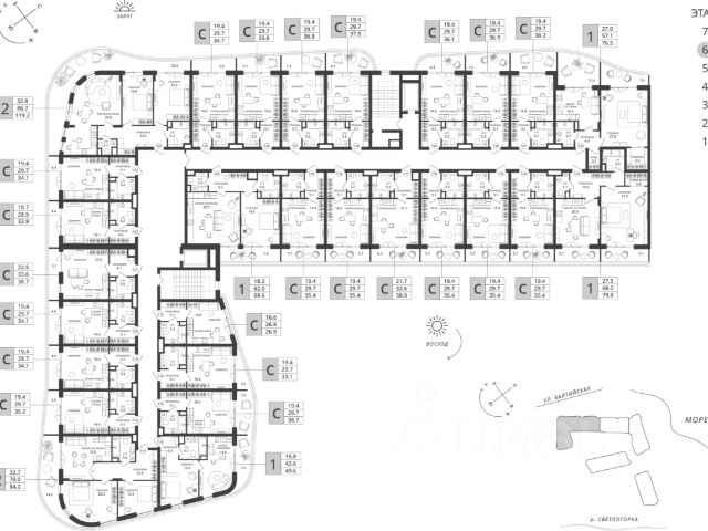 Представляем вам уникальный проект в Светлогорске жилой комплекс Морская нота. Это место, где природа и комфорт сливаются в единую симфонию, создавая идеальные условия для жизни и отдыха. Архитектура и удобства Комплекс состоит из 16 пятиэтажных домов, каждый из которых оснащен лифтом для вашего удобства. Мы позаботились о создании безбарьерной среды, чтобы каждый житель чувствовал себя комфортно. В домах предусмотрено автономное отопление, что гарантирует тепло и уют в любое время года. Разнообразие планировок В Морской ноте представлены уютные студии, одна- и двух- квартиры различных планировок. Эргономичные квартиры с открытыми балконами и остекленными лоджиями позволяют наслаждаться свежим морским воздухом и потрясающими видами на окрестности. Идеальное расположение Комплекс расположен в непосредственной близости к морю, что позволяет вам ежедневно наслаждаться музыкой волн и свежестью бриза. Отличная транспортная доступность обеспечивает легкий доступ ко всем необходимым объектам инфраструктуры города Светлогорска. Безопасность и комфорт Ваша безопасность наш приоритет. Комплекс оборудован современными системами видеонаблюдения, чтобы вы могли жить спокойно и уверенно. Квартира от застройщика Покупка квартиры напрямую от застройщика это гарантия качества и надежности. Мы предлагаем выгодные условия приобретения жилья в новостройках. При покупке квартир в данном ЖК вы можете использовать любые сертификаты и любые ипотечные программы (семейная, IT). Так же вы можете воспользоваться беспроцентной рассрочкой от застройщика. В продаже имеются кладовые помещения Откройте для себя жизнь у моря с жилым комплексом Морская нота здесь каждая деталь продумана для вашего комфорта! *условия рассрочки уточняйте у менеджера