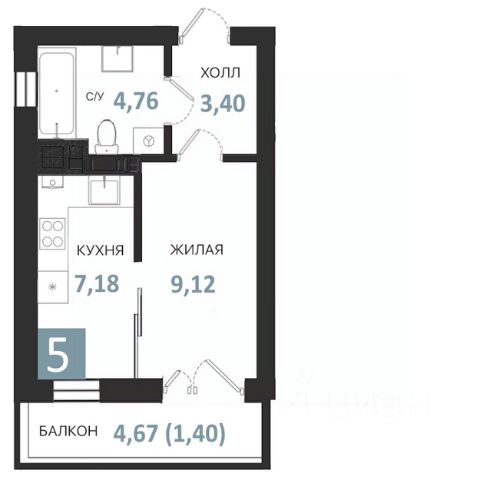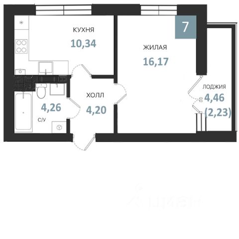 • санузел - 4,42 кв.м.