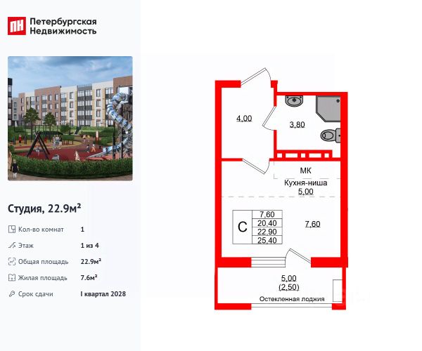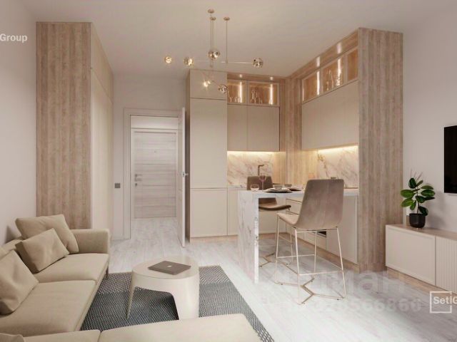 Продается просторная студия от застройщика в жилом комплексе "Кроны и Волны" в Зеленоградск. Удобная, классическая, функциональная европланировка, большая кухня-гостиная 9.7 м², просторная прихожая 3.3 м². Общая площадь студии - 28.1 м², жилая 9.7 м², высота потолка 3 м. Квартира продается с отделкой "КиВ "Норд Лайн Серый"". Что особенного в ЖК "Кроны и Волны"? • Современный малоэтажный жилой комплекс • Дизайнерские детские площадки, зоны для спорта и активного отдыха, велодорожки • Помещения для колясок и велосипедов в каждой парадной • Неповторимые лесные пейзажи в непосредственной близости к побережью Балтийского моря • Концепция "Двор без машин"